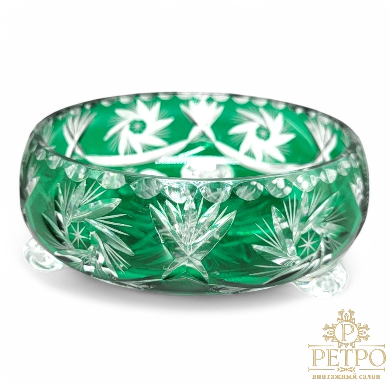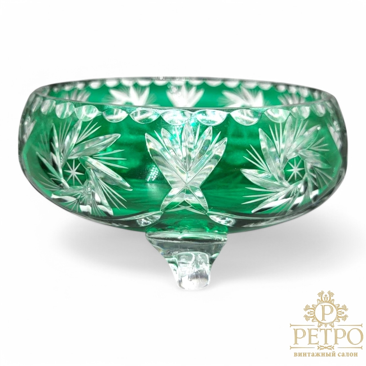 Винтажная конфетница Nachtmann из изумрудного хрусталя