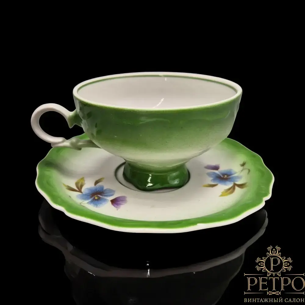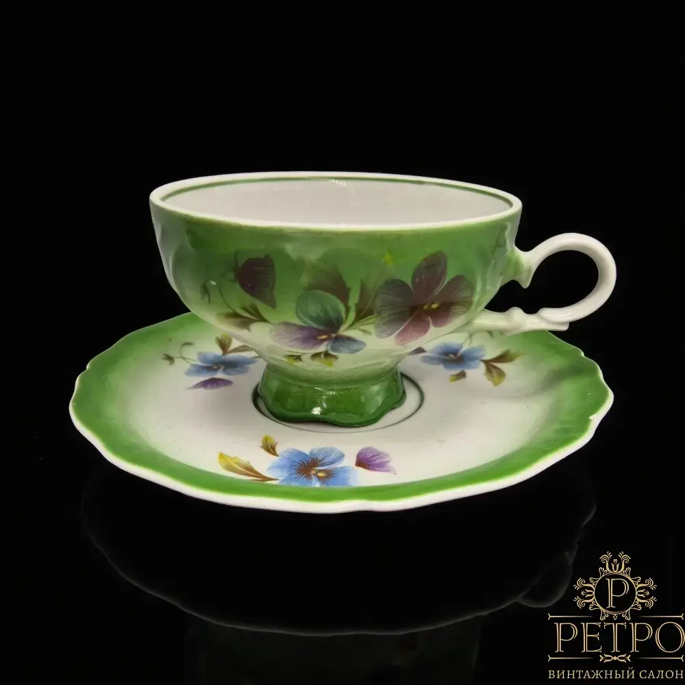 Винтажная чайная пара «Анютины глазки» от Дулёвского фарфорового завода