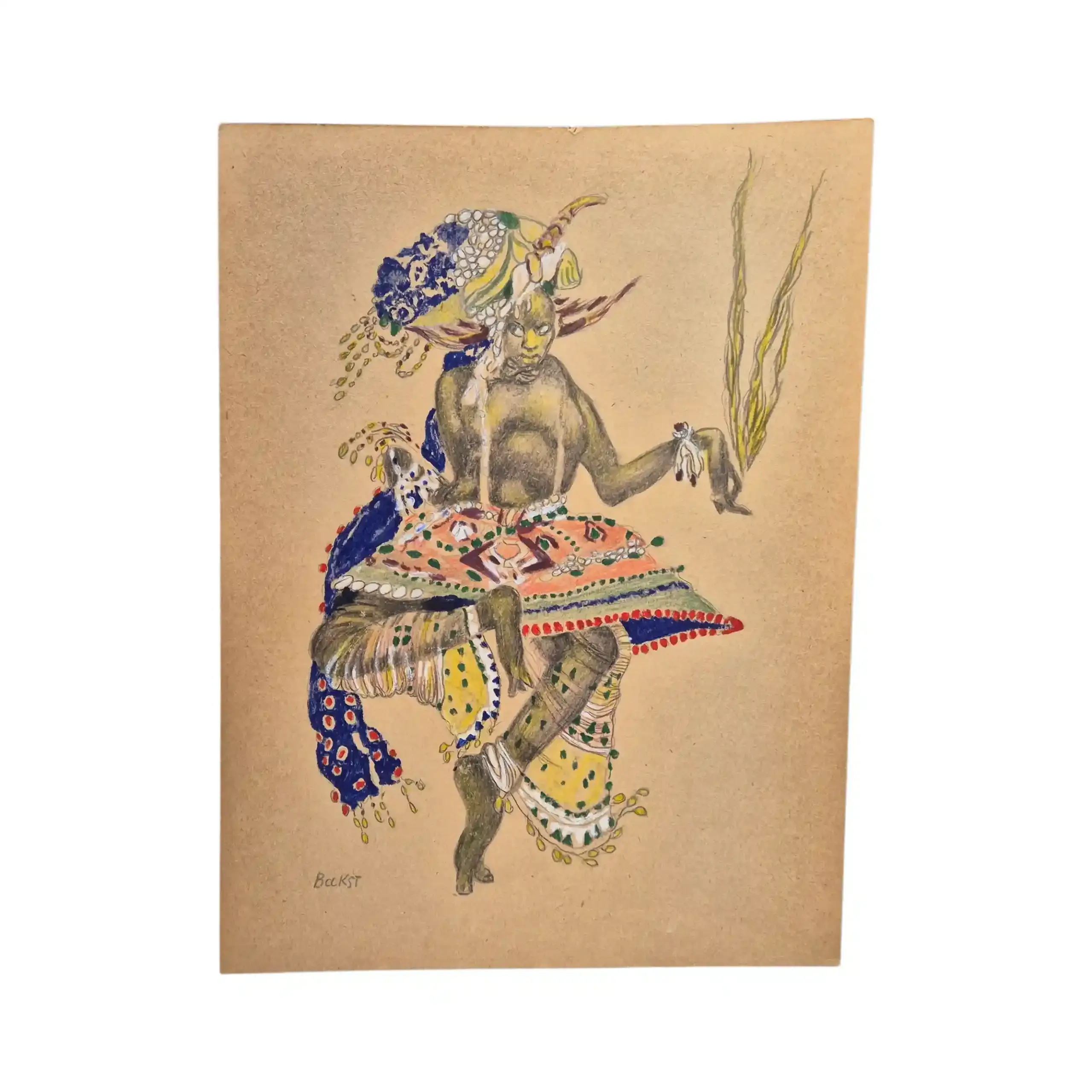 Антикварный эскиз костюма к балету «Синий бог» Леона Бакста, 1912 г.