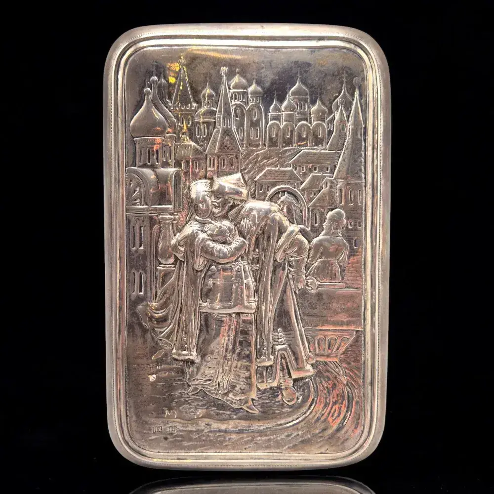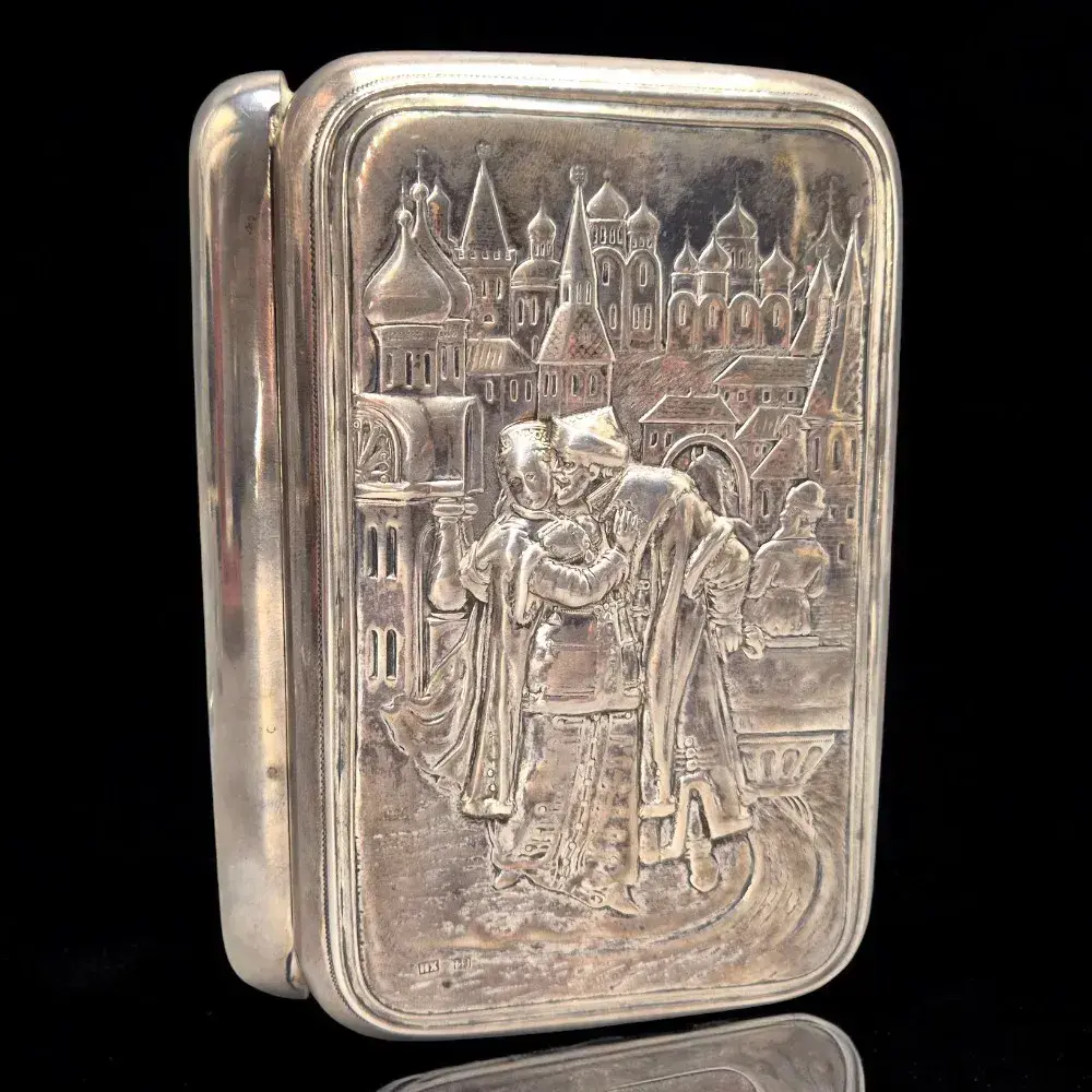 Антикварный серебряный портсигар Хлебникова, 1884 год, Москва