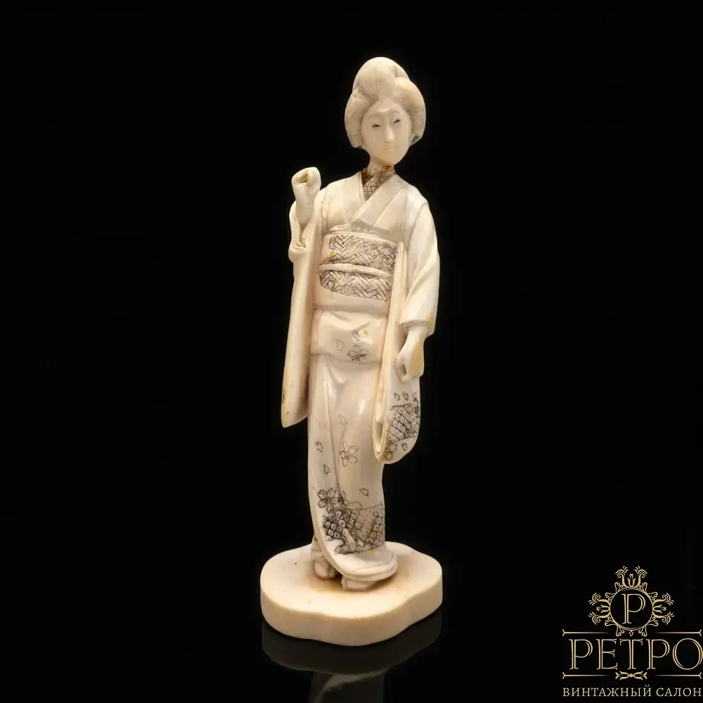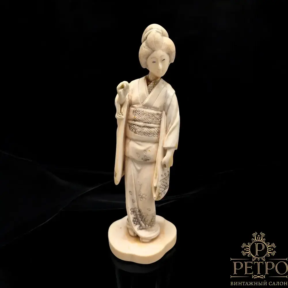 Антикварное окимоно «Гейша» из слоновой кости — Япония, эпоха Мэйдзи