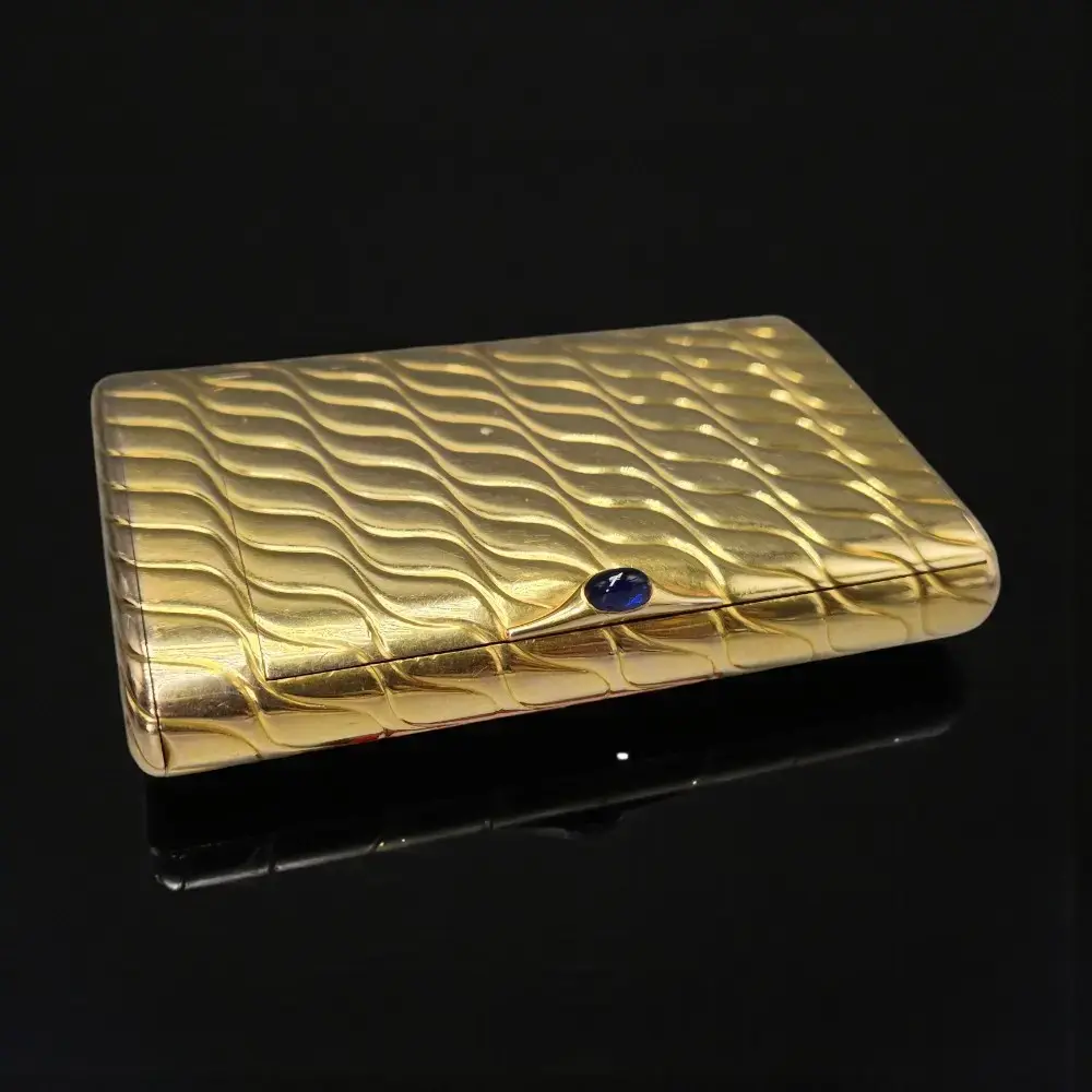 Антикварный золотой портсигар царской эпохи с сапфиром