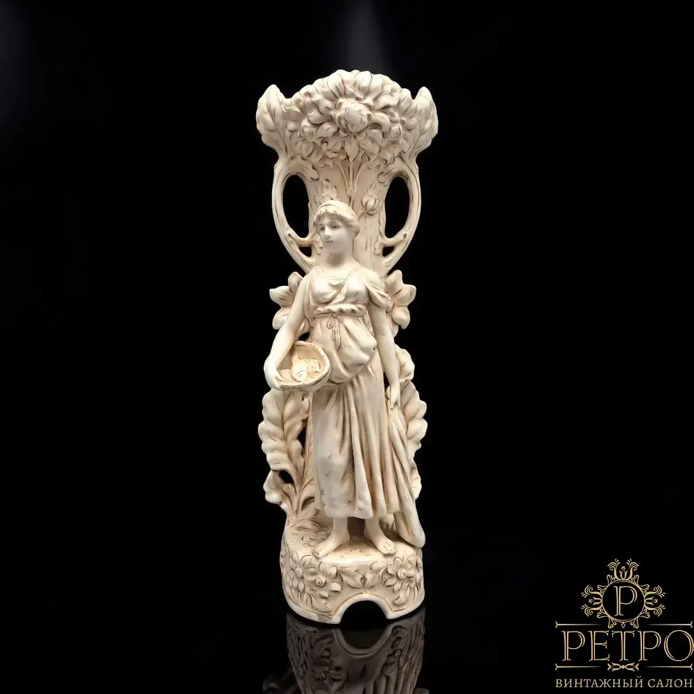 Антикварная статуэтка «Девушка с птичьим домиком»