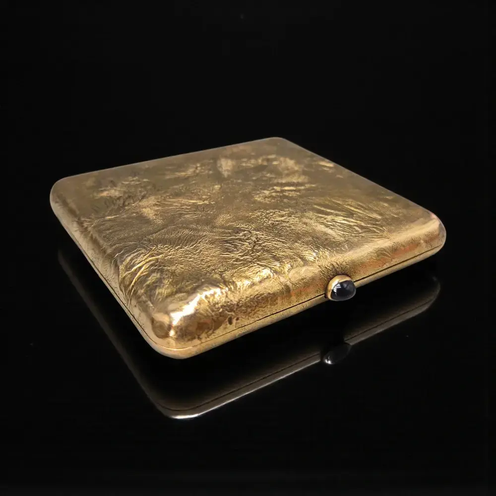 Антикварный золотой портсигар царской эпохи с сапфиром