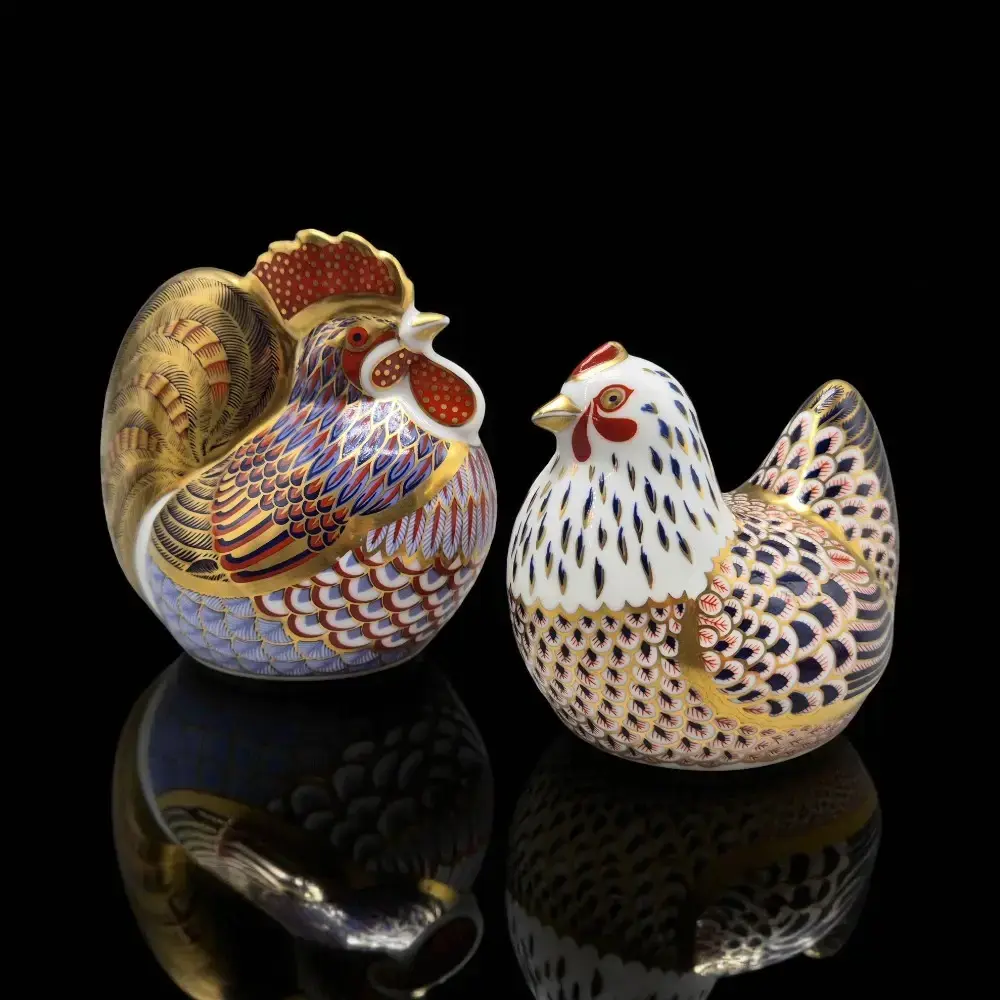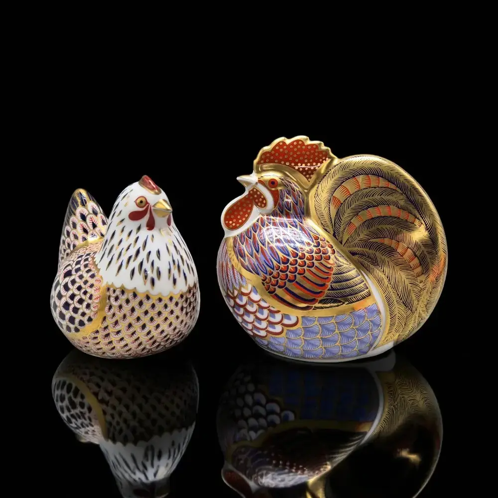 Статуэтки курицы и петуха Royal Crown Derby — английский фарфор
