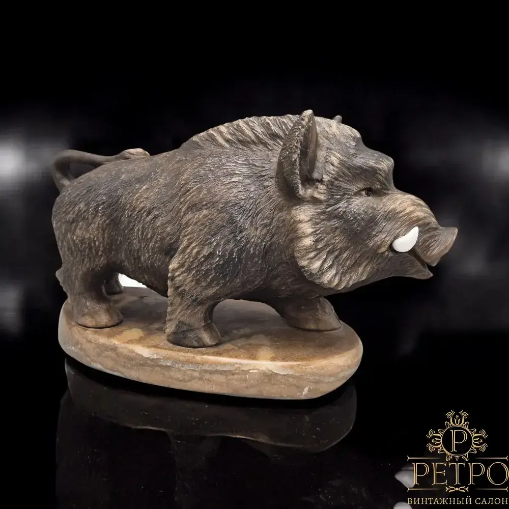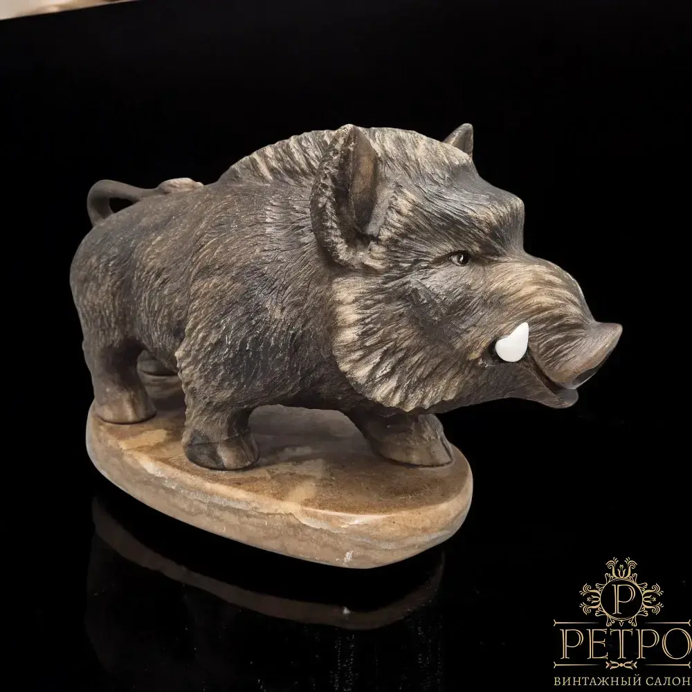 Скульптура дикого кабана из камня
